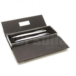 Kit de caderno e esferográfica. C. sintético. Com 80 folhas não pautadas. Fornecido com caixa presente em PP.