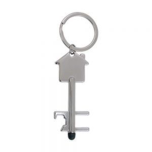 Abridor de garrafas com argola em aço carbono e cabo com revestimento em plástico ABS.