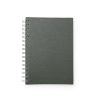 Bloco de anotações pequeno com capa de couro sintético texturizado e espiral prata metálico. Possui aproximadamente 96 folhas brancas pautadas e páginas para: dados pessoais, calendário de 2018 à 2021 e planejamento.