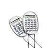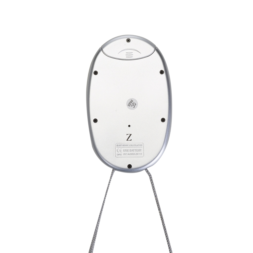 Calculadora plástica oval com 8 dígitos prata, cordão e acessórios coloridos, necessita de 1 bateria AG10 para funcionamento (Inclusa).