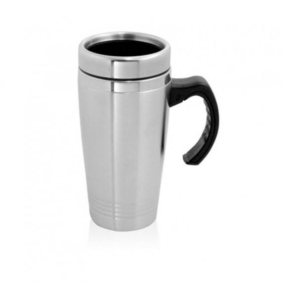 Caneca metálica em inox com detalhes em plástico (Não é térmica).