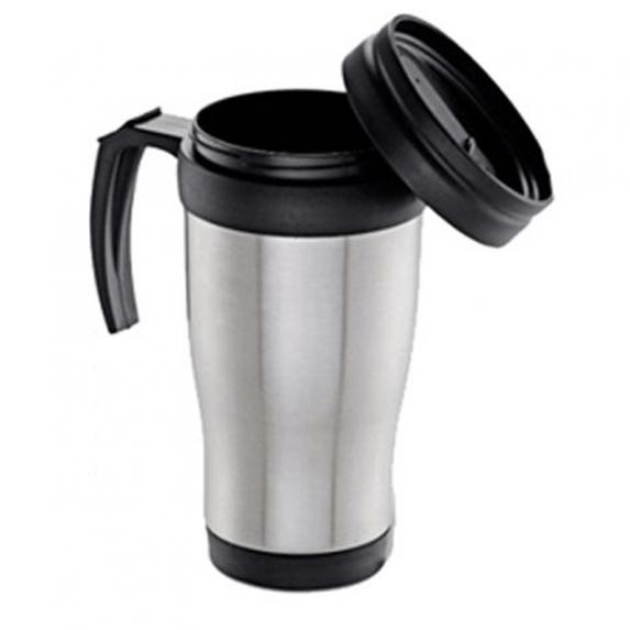 Caneca metálica em inox com detalhes em plástico (Não é térmica).