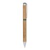 Caneta Ecológica de Bambu com detalhes em plástico colorido no anel e ponta superior. Clip de metal, acionada por giro.