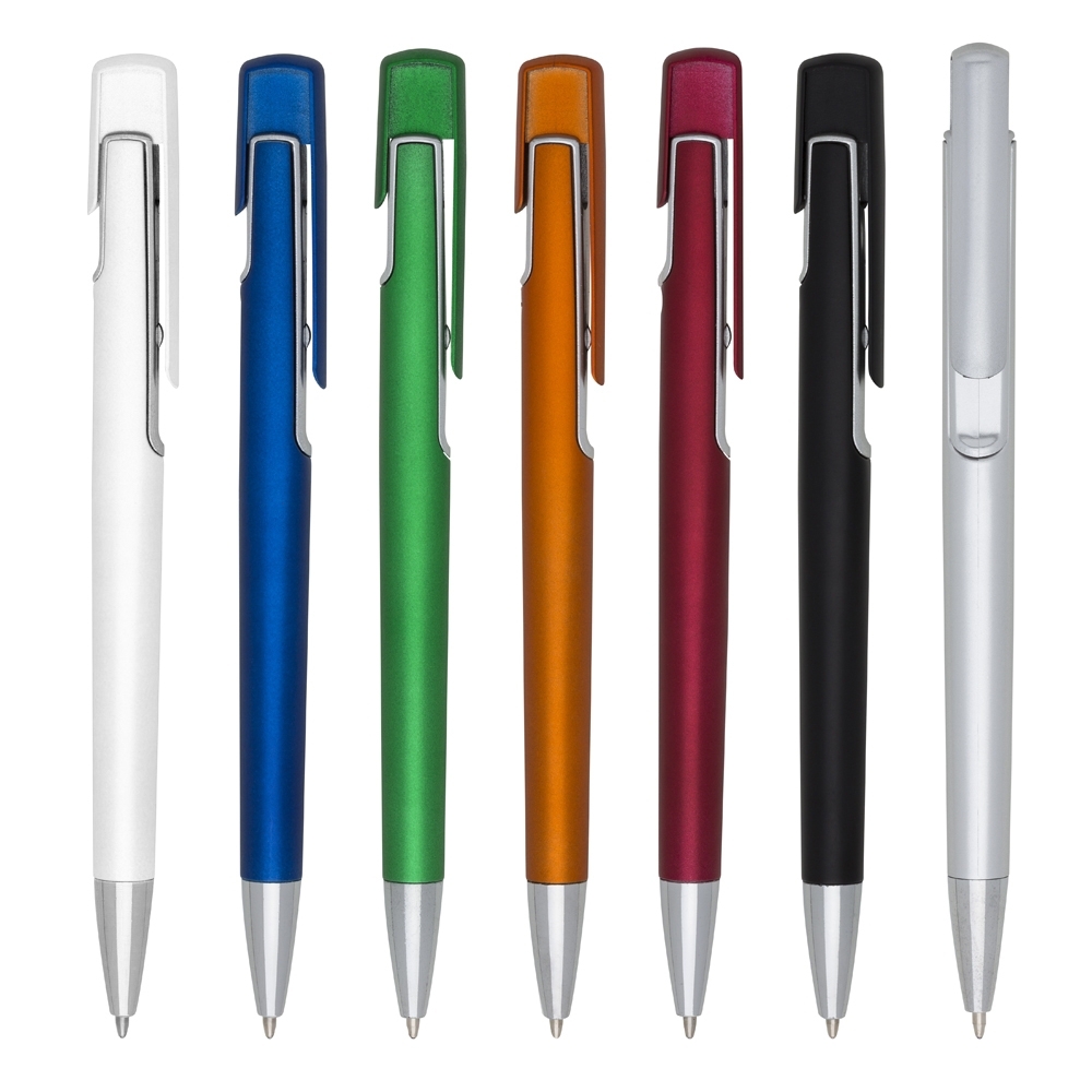 Caneta plástica acionada por clique.