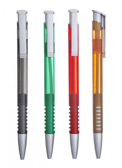 Caneta plástica com clipe e plástico translucido
