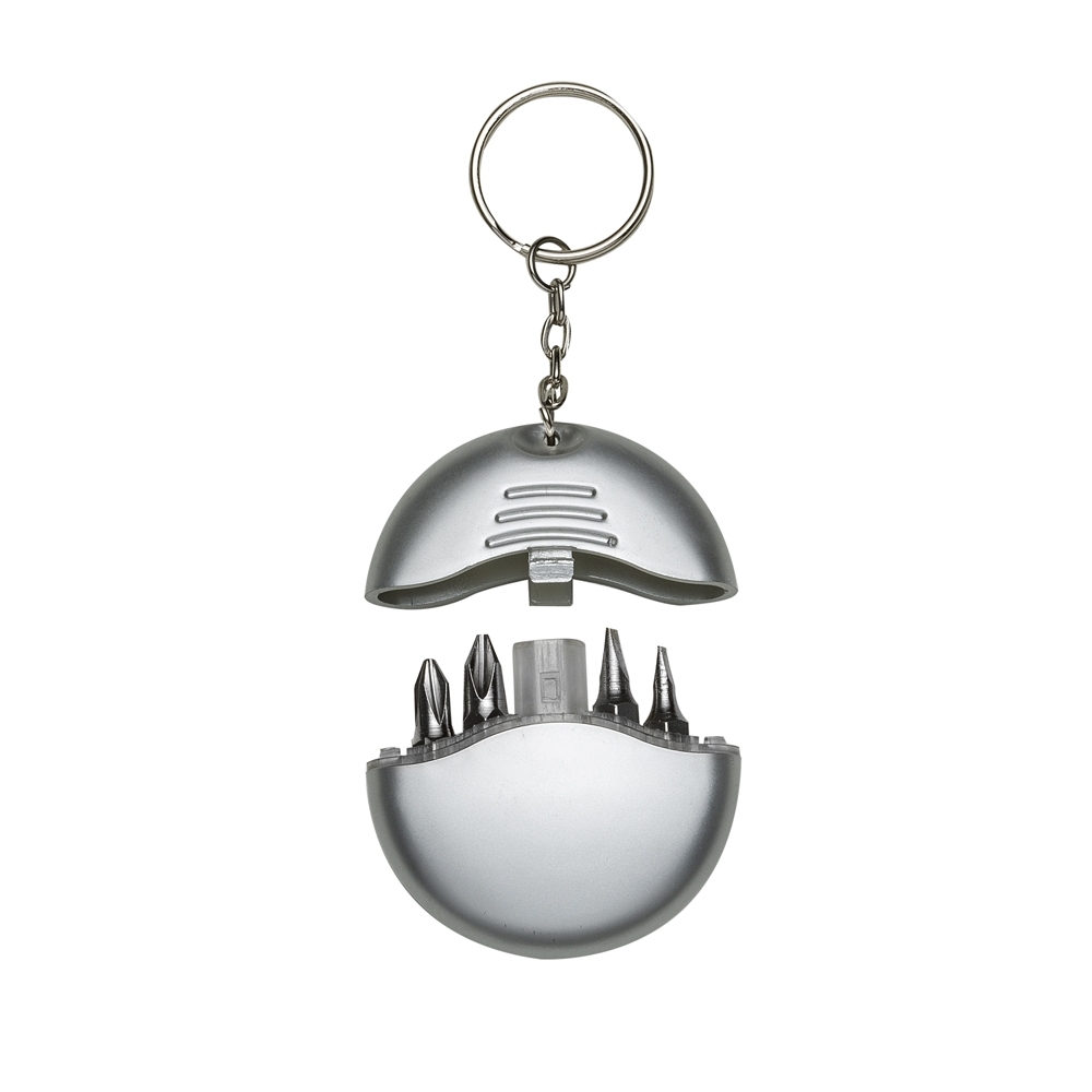 Chaveiro kit ferramentas com 4 peças, material em plástico resistente. Possui relevo na tampa.
