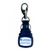 Chaveiro plástico redondo com mosquetão e argola.