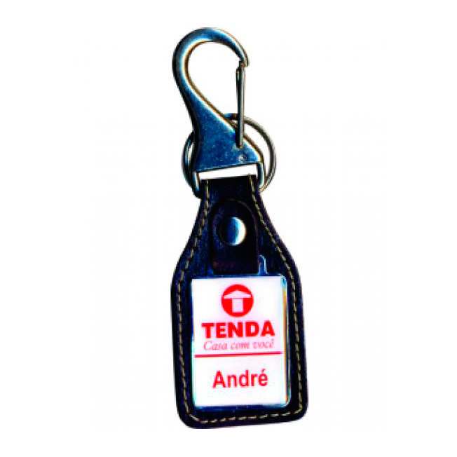 Chaveiro em couro, Resinado com mosquetão em metal.