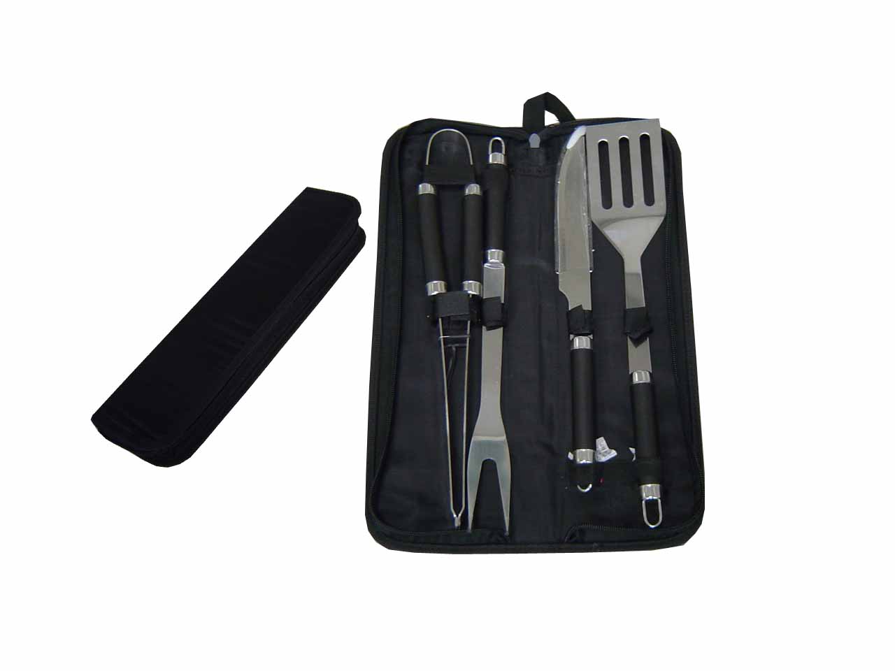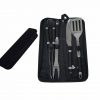 Kit churrasco com 4 peças em inox, acompanha estojo em nylon.