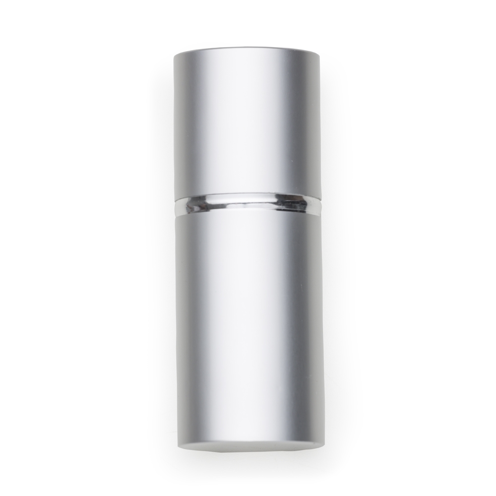 Kit manicure 4 peças em estojo oval de alumínio. Possui lixa, tesoura, empurrador de cutícula e cortador de unha.