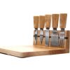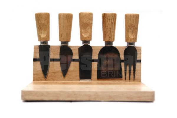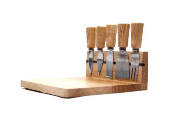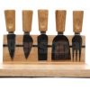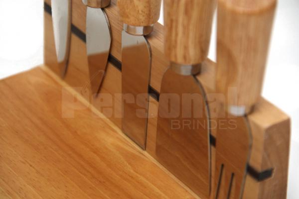 Kit queijo com 6 peças e base em madeira.