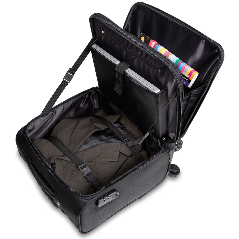 Mala de viagem com cadeado TSA. Confeccionada em nylon de alta qualidade, possui alça de mão, puxador retrátil com estágios para regulagem e botão acionador, cadeado de segredo, sistema com 4 rodas multidirecionais, identificador de bagagens na parte traseira, bolso frontal com detalhe externo em couro sintético e bolso superior médio com divisória. Compartimento principal com bolso para notebook até 13.3 polegadas, bolso pequeno e forro com zíper. A parte interna conta com um sistema organizatório através de alças de nylon ajustáveis, quando utilizadas impedem que as roupas se movimentem dentro da mala enquanto à transporta. Acompanha plaquinha para personalização. Utilização do cadeado: para criar um segredo pressione e segure o botão “push”, crie a numeração desejada e em seguida solte o botão para assumir a codificação criada, repita o mesmo processo sempre que necessitar fazer alguma alteração.