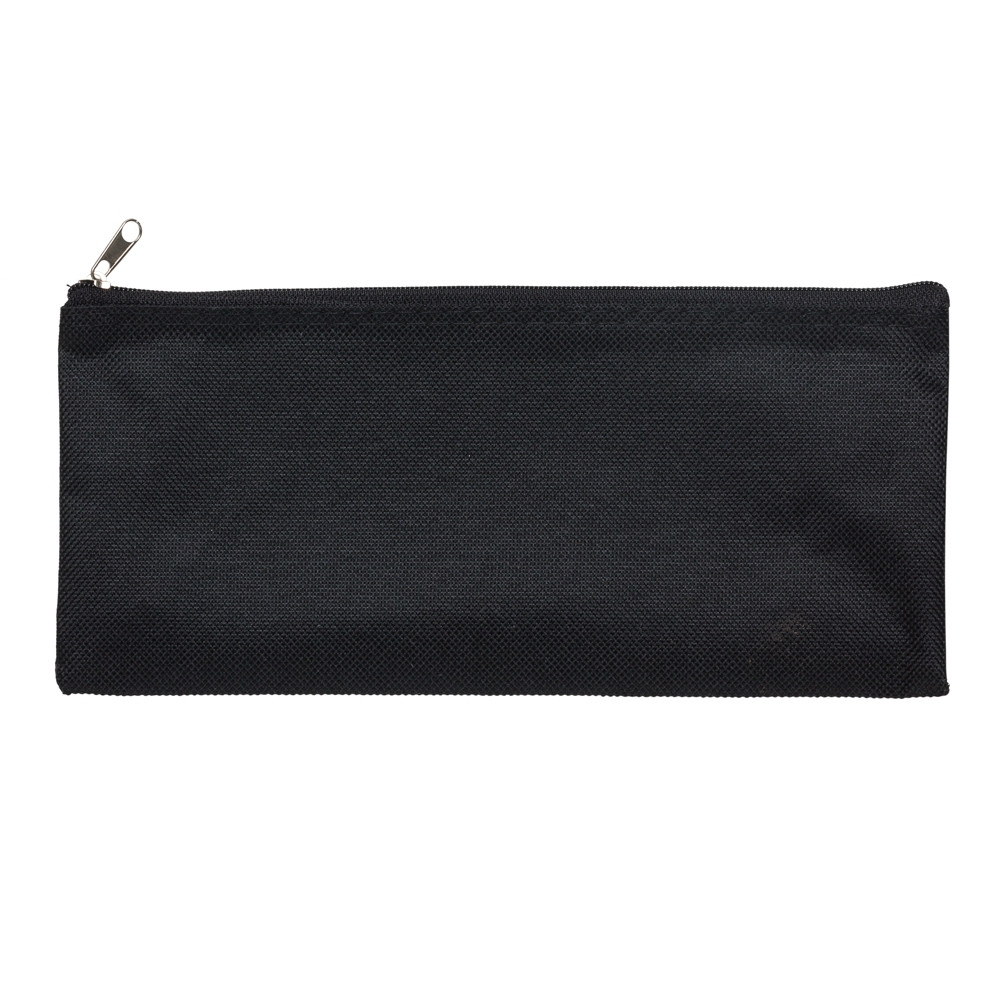 Nécessaire (Estojo) preta com frente e verso lisos, zíper superior, material Oxford/Nylon.
