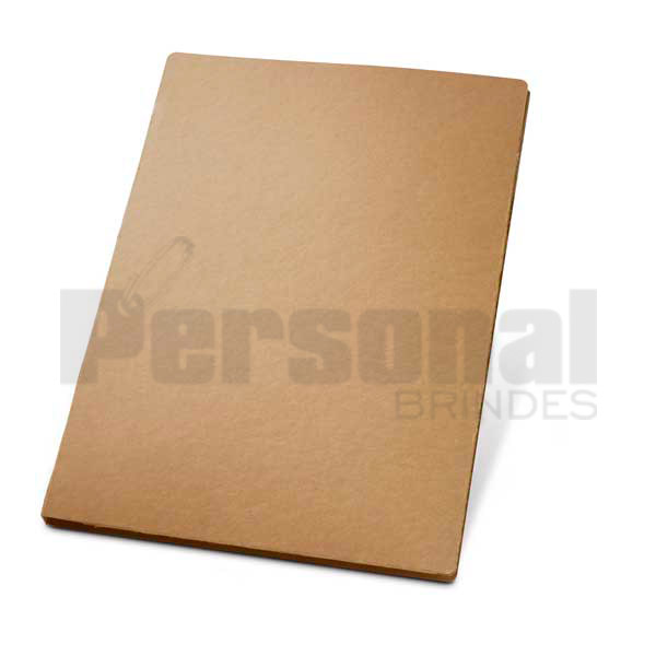 Pasta A4. em papel cartão: 450 g/m². Bloco: 20 folhas não pautadas de papel reciclado. Incluso esferográfica.