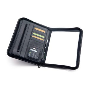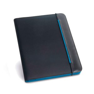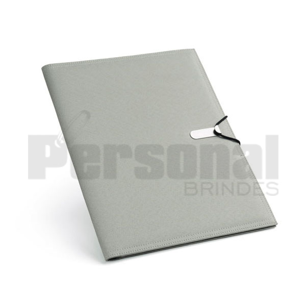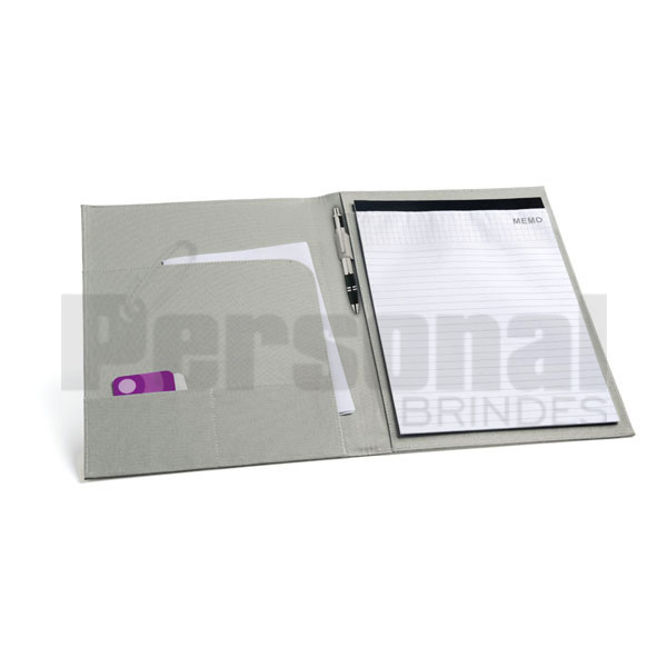 Pasta A4 em nylon 600D com Bloco: 20 folhas pautadas. Esferográfica não inclusa.