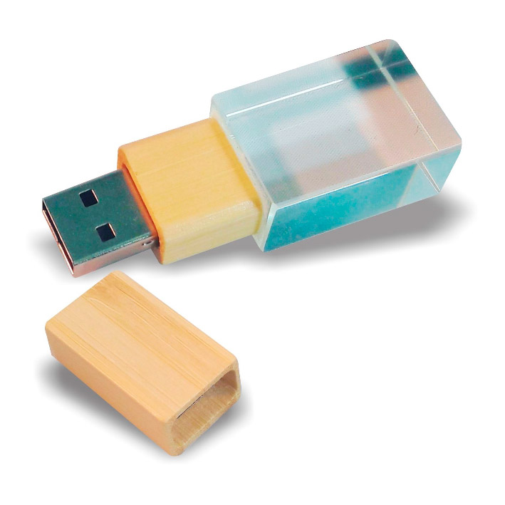Pen drive ecológico com detalhe em vidro.