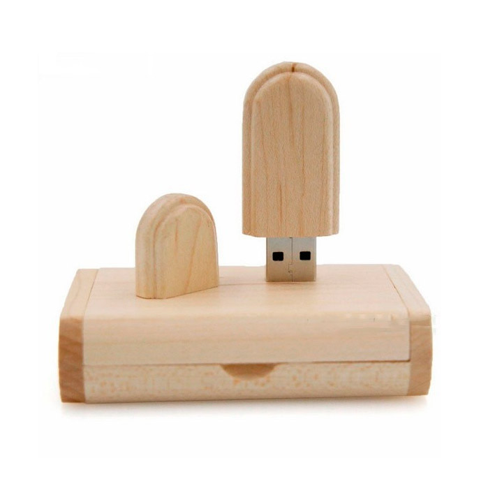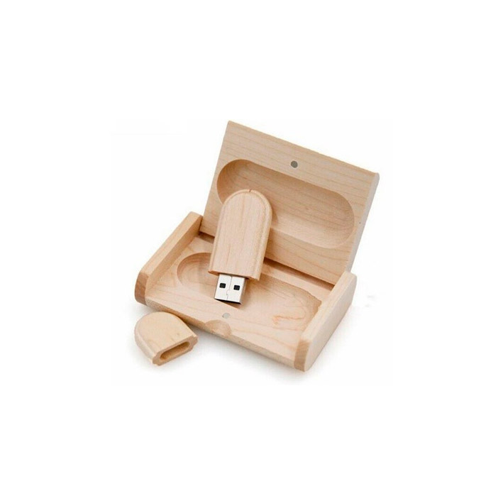 Pen drive em bambu com tampa (Fechamento com imã), acompanha caixa executiva em madeira.