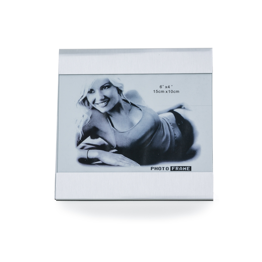 Porta retrato 10 cm x 15 cm com duas chapas metálicas(superior e inferior) que podem ser removidas. Possui uma tela de vidro e parte traseira(apoio) revestido de veludo, acompanha película protetora.