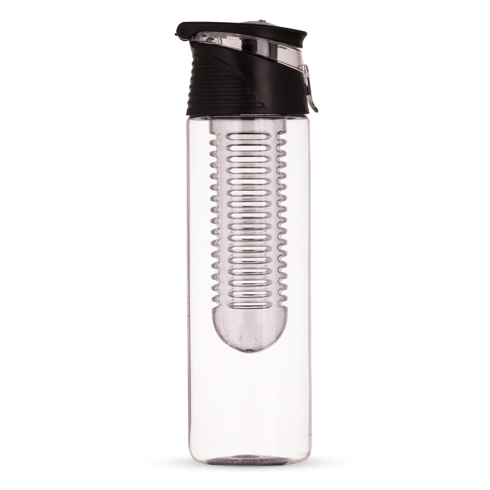 Squeeze plástico 700 ml com infusor. Tampa rosqueável colorida com alça acoplada na tampa, possui uma espécie de fivela para lacre(basta levantar/abaixar para abrir/fechar o bico). Possui um infusor(rosqueável) na parte interna.